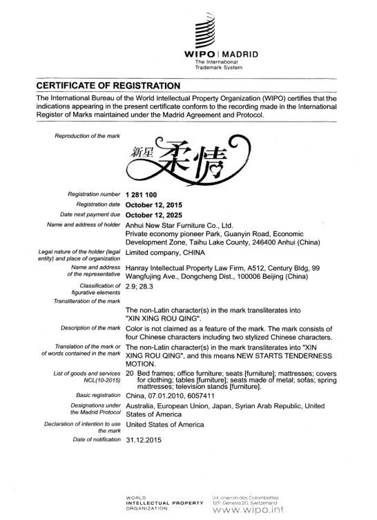 安徽新星家具有限公司地址:安徽太湖經(jīng)濟(jì)開發(fā)區(qū)